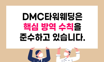 [플라워 리뉴얼] 꽃으로 완성되는 유러피안 감성 꽃으로 완성되는 유러피안 감성, DMC타워웨딩의 플라워가 새로워졌습니다. 한 송이 한 송이에 감정을 담아 웨딩 공간 전체를 작품처럼 완성하는 플라워 스타일링. 감각적인 컬러, 섬세한 디테일, 그리고 계절의 향기를 담은 리뉴얼 디자인으로 당신의 웨딩을 더욱 빛나게 합니… 2025.11.16 MORE [리뉴얼] 2025년 8월, 연회장 리뉴얼 오픈 2025년 8월, 연회장 리뉴얼 오픈. 모던함과 여유로움을 담은 새로운 연회장에서 한층 더 깊어진 미식으로 특별한 순간을 완성합니다.… 2025.07.21 MORE [신상 베뉴] 2025년 2월, 펠리체홀 오픈 하늘과 맞닿은 빛의 화원, 신상 베뉴 4F 펠리체홀 오픈 DMC타워웨딩에서 새롭게 선보이는 럭셔리 가든 하우스웨딩. 당신이 그리던 꿈의 웨딩, 지금 새로운 이야기가 시작됩니다.… 2024.08.05 MORE DMC타워웨딩 & 세스코멤버스 DMC타워웨딩은 청결한 위생과 각종 바이러스로 부터 고객님을 보호하기 위해 세스코멤버스에 가입되어 있습니다. 지속적인 정기관리로 항상 청결한 위생을 유지하고 있습니다.… 2021.08.09 MORE DMC타워웨딩은 핵심 방역 수칙을 준수하고 있습니다. 코로나 바이러스 예방을 위해 핵심 방역 수칙을 철저하게 준수하고 있습니다. 7월 1일부터 전자출입명부 QR코드 체크인 실시, 테이블간 투명 가림막 설치, 비접촉 체온측정계로 입장전 발열 및 마스크 체크, 매장 곳곳에 손소독제 비치, 전 공간 특별 방역 실시, 정부 방… 2020.08.31 MORE 사회적 거리두기로 뷔페가 불가한 경우 프리미엄 1인 상차림 제공 DMC타워웨딩은 코로나 바이러스로 인한 사회적 거리두기로 뷔페가 불가한 경우 프리미엄 1인 상차림을 제공합니다. 이용객간 접촉 최소화하고 편안하게 식사하실 수 있도록 테이블간 투명 가림막 설치하고 1인 상차림을 제공합니다. … 2020.08.31 MORE 마포 DMC타워 웨딩홀, 그랜드볼룸홀·라피네홀 리뉴얼 완료 화제 서울 마포웨딩홀 'DMC타워웨딩홀'이 리뉴얼을 단행하며 선진 웨딩 문화 패러다임 정립에 본격 나선다. DMC타워웨딩홀은 최근 2층 그랜드볼룸홀과 3층 라피네홀의 리뉴얼 과정을 마무리했다고 밝혔다. 특히 차세대 웨딩 문화 트렌드에 부합하는 인테리어와 분위기… 2019.11.05 MORE 1